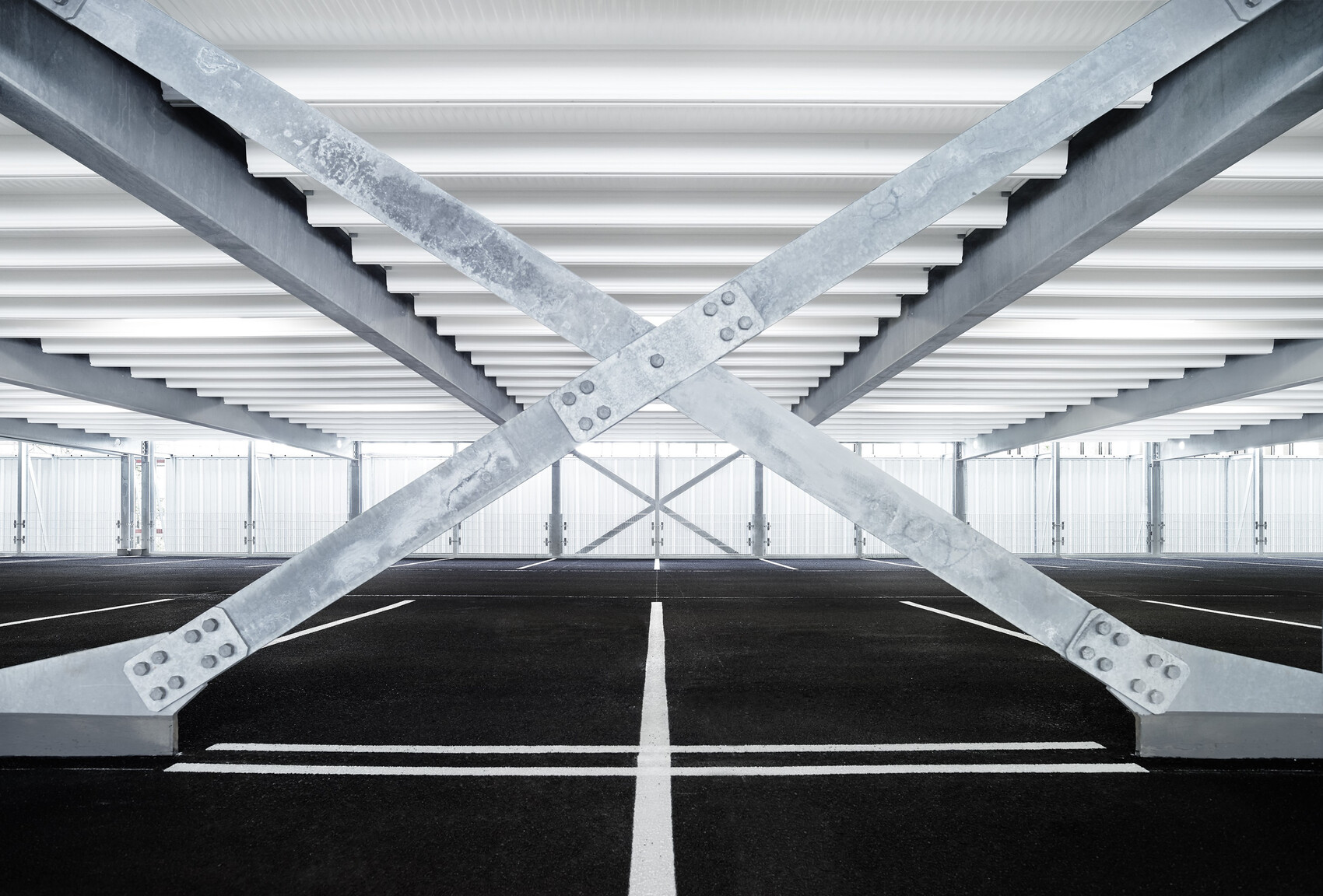 Damit das Gebäude in Symbiose zu der umgebenden Landschaft tritt, wurde eine dunkel eloxierte Lamellen- und Streckmetallfassade gewählt. Die Lamellen bilden nach oben und unten unscharfe Kanten und lassen aus unterschiedlichem Blickwinkel differente Strukturen erscheinen. Aufgrund des Schichtbetriebs ist das Parkhaus auch nachts zwischen 22.00 Uhr und 06.00 Uhr in Betrieb. Dies erforderte eine gegen Schallimmission schützende Fassade, ebenfalls mussten die notwendigen freien Entrauchungsquerschnitte erreicht werden. Zusätzlich wurde die Fassade außen schallabsorbierend ausgebildet, sodass keine Schallreflexion zu den Nachbarn entsteht.