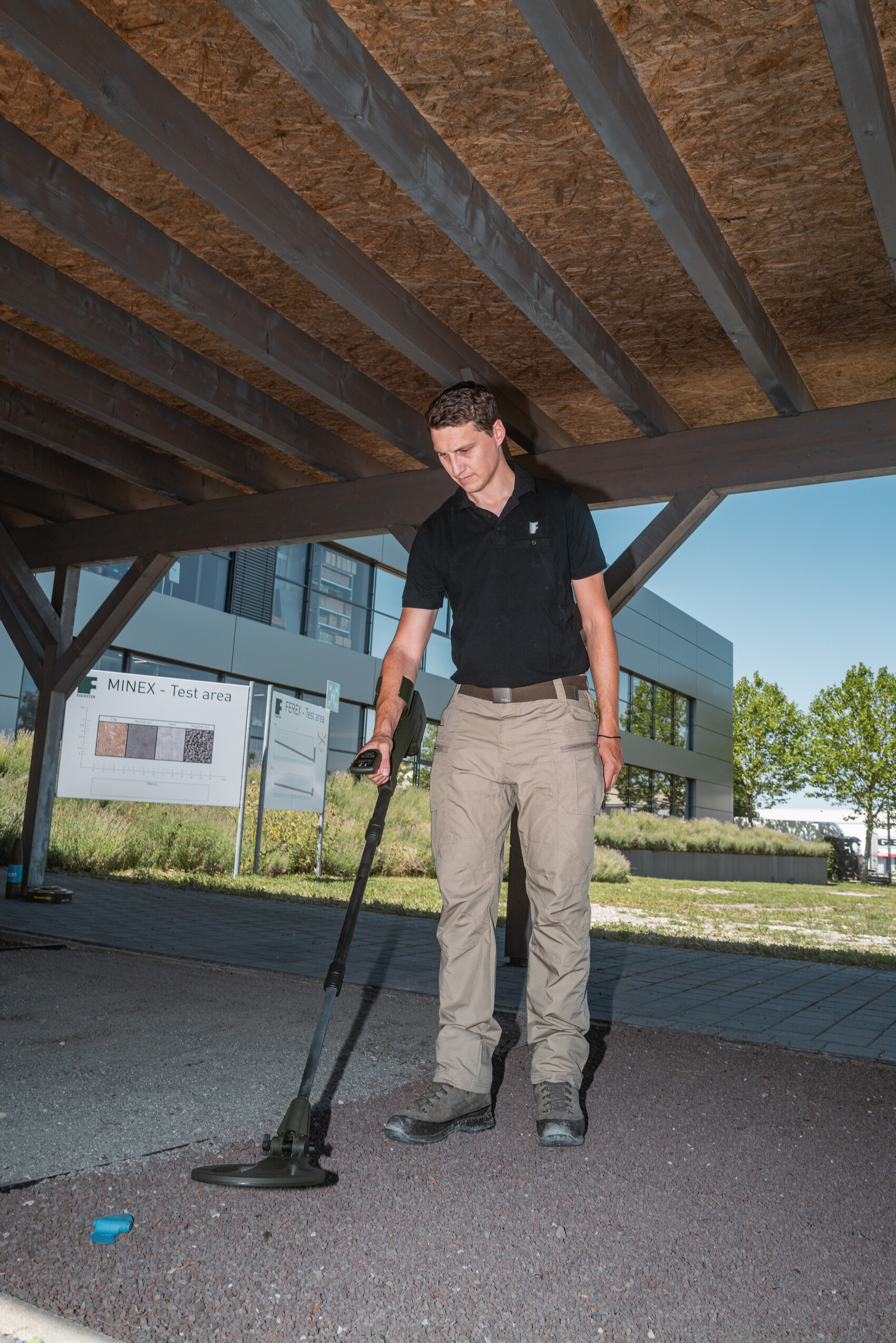 Die Aufgabe klang zunächst unkompliziert: eine Überdachung für einen Sandkasten. In der Praxis war das Projekt für die Firma Dr. Foerster jedoch ein wenig komplizierter. Denn in dem Sandkasten werden hochsensible Minensuchgeräte kalibriert. Bei der Konstruktion durfte kein Metall verwendet werden, um elektromagnetische Störungen auszuschließen und die Funktionsfähigkeit der Geräte nicht zu beeinträchtigen.