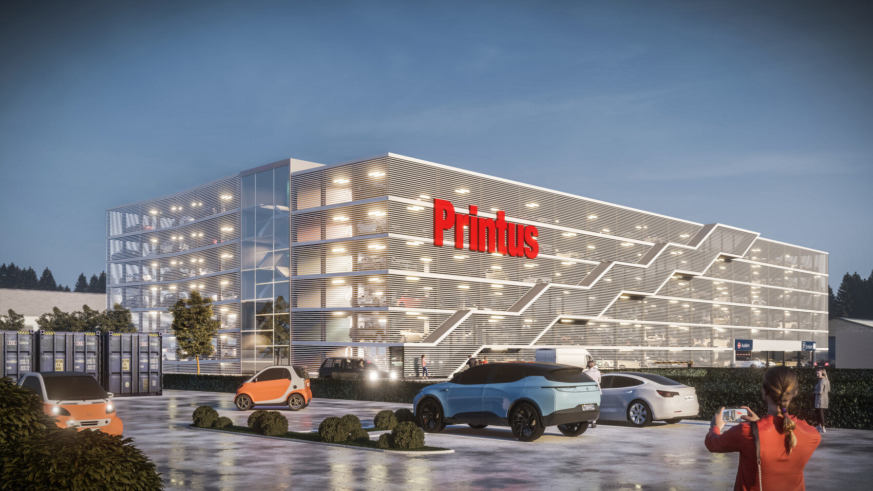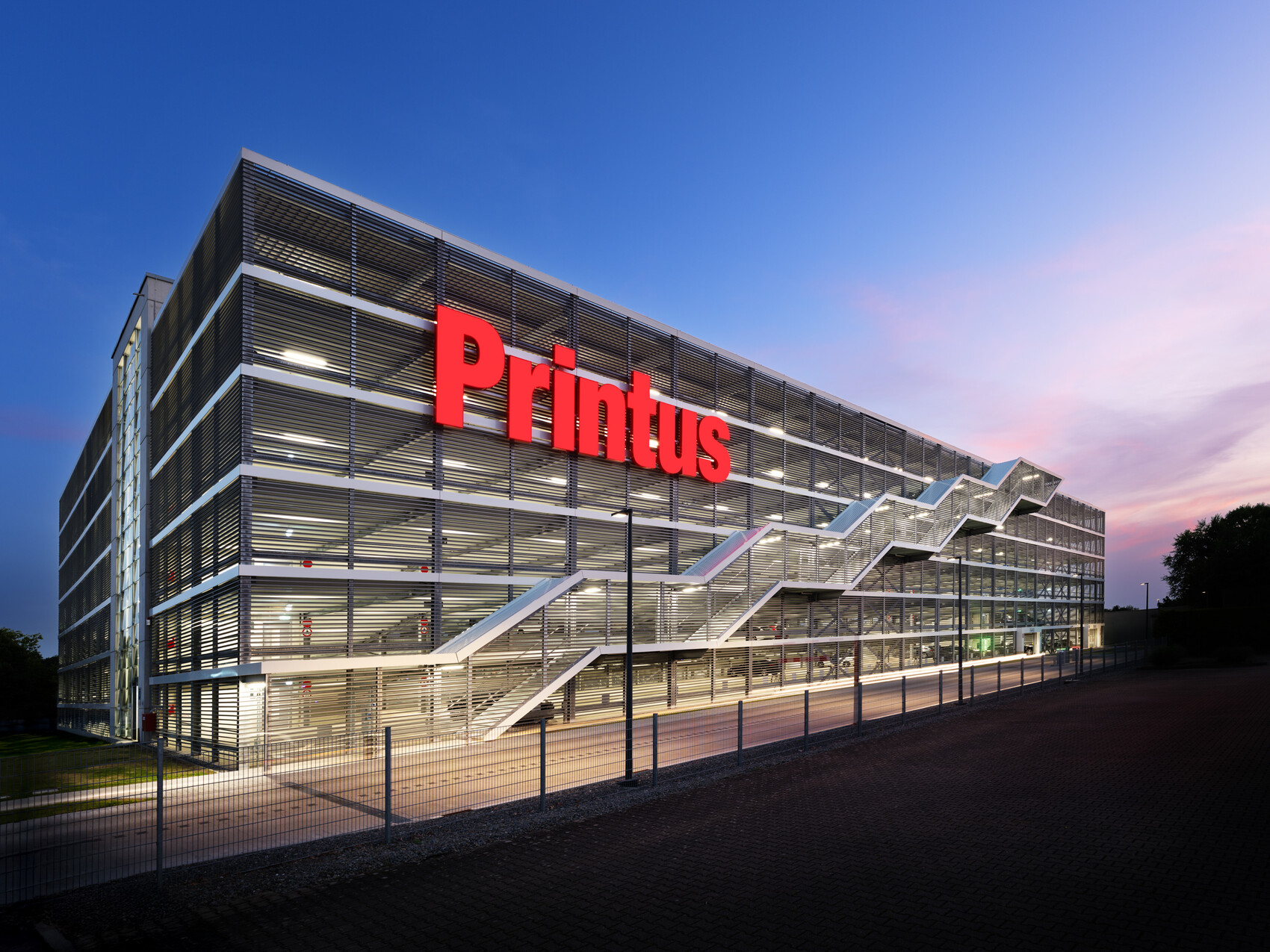 Das Printus Parkhaus zählt zu den größten Parkhäusern seiner Art abseits von Flughäfen. Es fasst die bisher dezentral verteilten Mitarbeiterparkplätze des Unternehmens zusammen und ist für die wachsenden Anforderungen eines modernen Büro- und Versandunternehmens konzipiert.